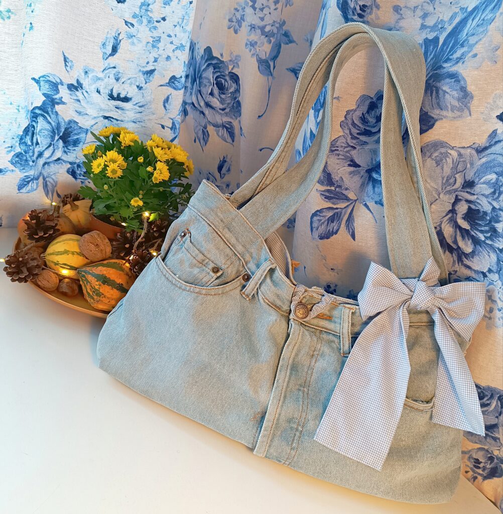 Upcyklovaná kabelka – recyklace jeansů a košile