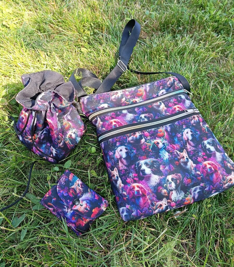 Pamlskovníky můžu ušít i ladící k obojku a vodítku jak pro menší parádnice, tak pro dospělé páníčkyVenčící taštička na důležité věci, pamlskovník a pouzdro na menší hotovost a dokladyPamlskovník lze nosit i kolem pasu nebo křížem na tělě (tzv. crossbody), popruh je odepínací s nastavitelnou délkou dle potřebyPamlskovník můžete připnout i na popruh od venčící taštičky